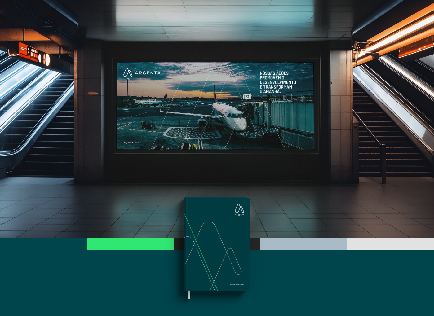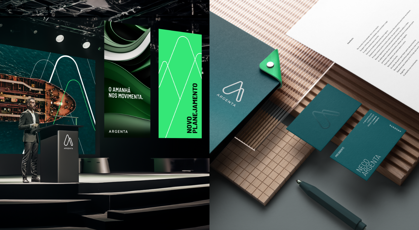 Nosso desafio foi construir essa marca do zero – com tudo o que ela precisava carregar: robustez, clareza e confiança. Passamos por todas as etapas do processo de branding: começando pela arquitetura de marca, que organizou as conexões entre as empresas do grupo; avançando para o posicionamento e o nome Argenta, que simboliza valor, solidez e presença nacional; e fechando com uma identidade verbal e visual que traduz energia, movimento e uma visão de futuro mais sustentável.