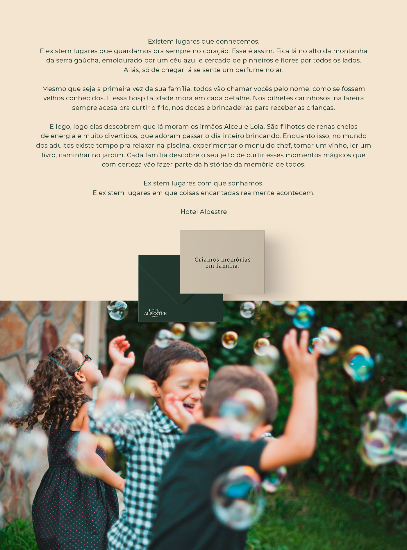 O Hotel Alpestre, um dos mais completos complexos de lazer da Serra Gaúcha, estava passando por um momento de mudanças quando nos procurou buscando um rebranding. Através de um novo posicionamento único, o Alpestre saiu de um lugar de ampla concorrência na hotelaria de Gramado (RS) e se posicionou como um destino ideal para receber um público específico: famílias.
